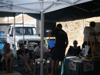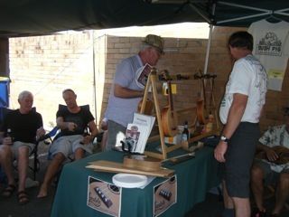 We had a fun new experience on Saturday afternoon. Keith and his team invited us up to the Patagonia Shop at Burliegh Heads for a show and tell about our ukes.It was an informal get together held out the back of the shop and as the first of these events it went off very well. Nice group of people from all walks with a common interest in both ukes and the relaxed lifestyle that is Patagonia.Mostly just me banging’ on about how to build your own uke and questions from the crowd.We did manage a little impromptu Bob Dylan lesson with some beginners getting “You Ain’t Going Nowhere” under their belts as an intro to playing uke.A broad range of ages from 5mths up to about 122years (Dick Van Straalen must be at least that old with all the cool stuff he has done in surfing) and Patagonia cooked up a little BBQ and Beers with some lucky door prizes round it all off.